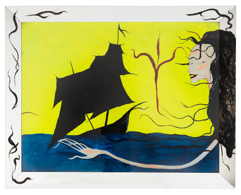 acrylic on paper in acrylic mirrored frame