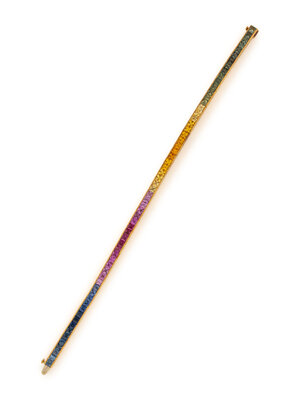 MULTICOLOR SAPPHIRE AND YELLOW GOLD LINE BRACELET