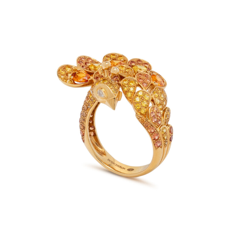 BOUCHERON, YELLOW AND ORANGE SAPPHIRE, AND DIAMOND 'HÉRA' RING