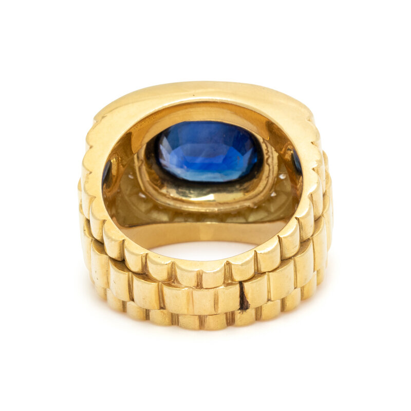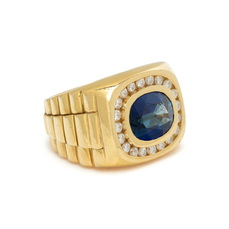 YELLOW GOLD, SAPPHIRE, AND DIAMOND RING