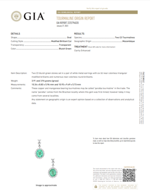 GIA, 2023, Report No. 2225794020, Tourmaline, Bluish Green color, Mozambique, Clarity Enhanced