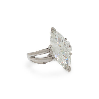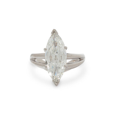 Containing one marquise brilliant cut diamond weighing 2.48 carats. Mounted in 14 karat white gold. Ring size 4 3/4.