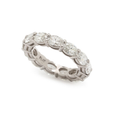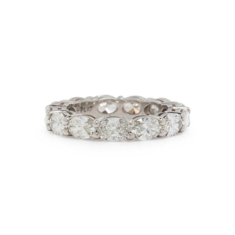 Containing oval brilliant cut diamonds weighing approximately 4.00 carats total. Mounted in platinum. Ring size 6 1/2.