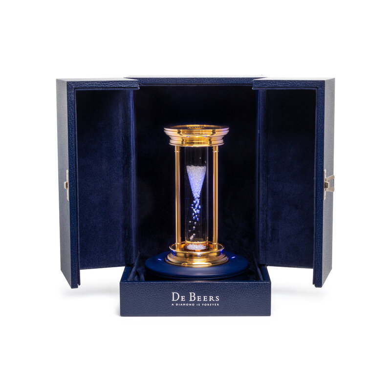 Accompanied by DeBeers box, base stand, and user manual.