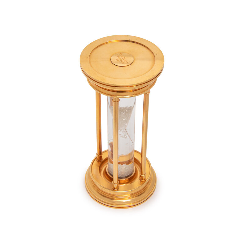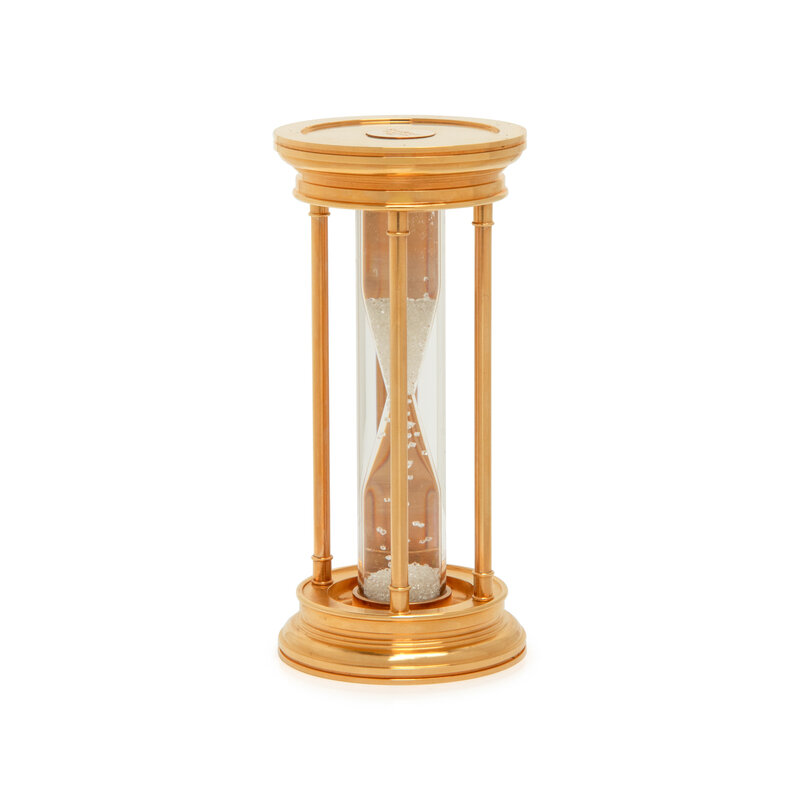 Comprised of a 24 karat gold-plated hourglass containing more than 2,000 diamonds weighing approximately 35.00 carats total. 2 3/4 x 5 3/4 inches.
