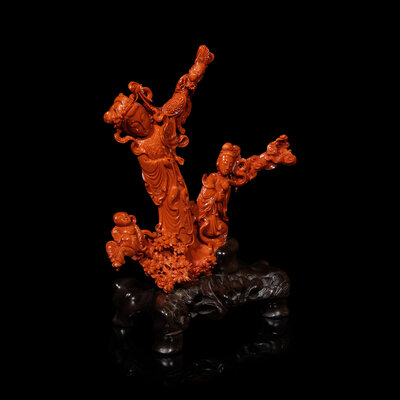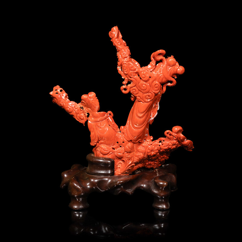 A Large Chinese Red Coral Carving, 20th Century