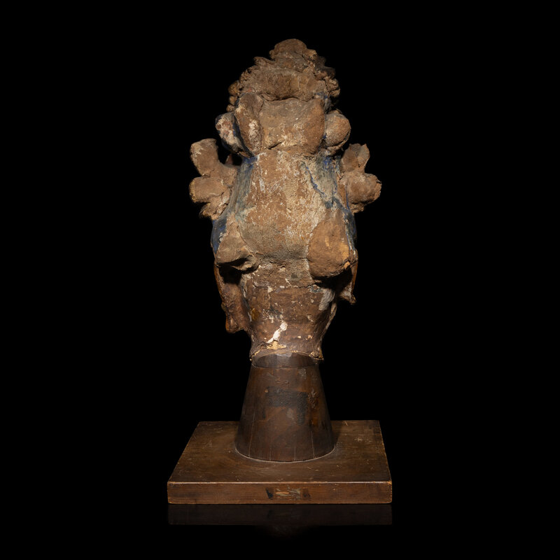 A Chinese Polychrome Painted Stucco Head of a Female Attendant, Song-Ming Dynasty