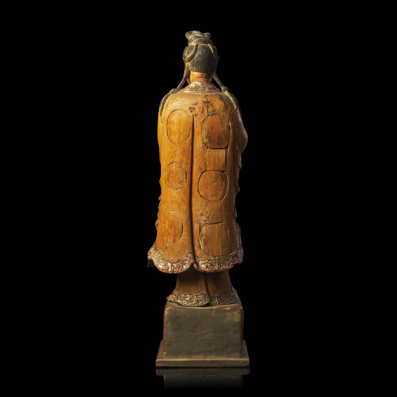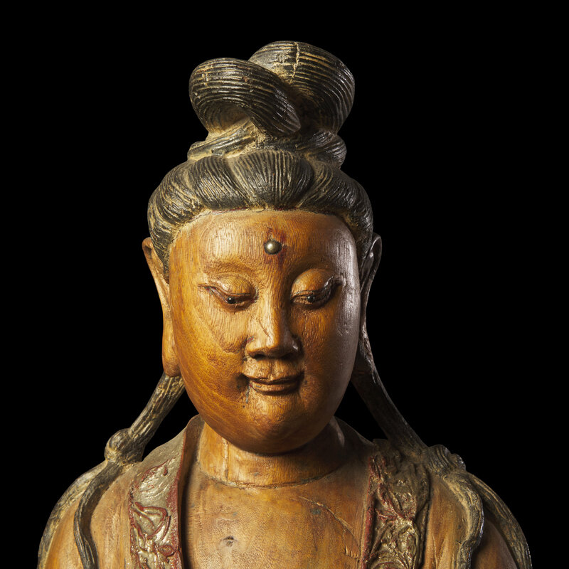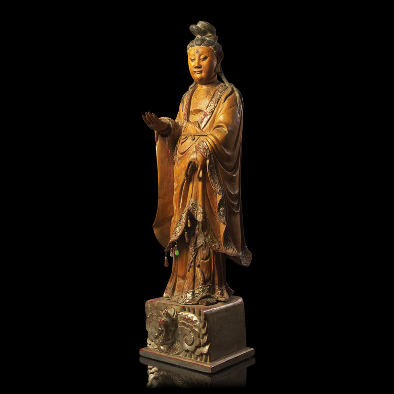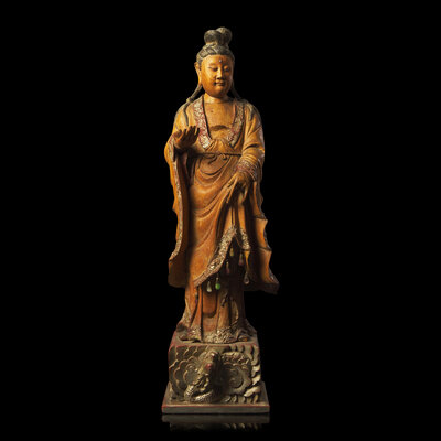 A Large Chinese Carved Wood Figure of Guanyin, Qing Dynasty