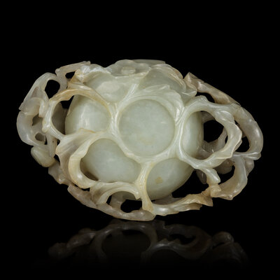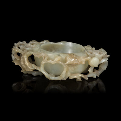 A Chinese Celadon Jade Peach Coupe, Qing Dynasty