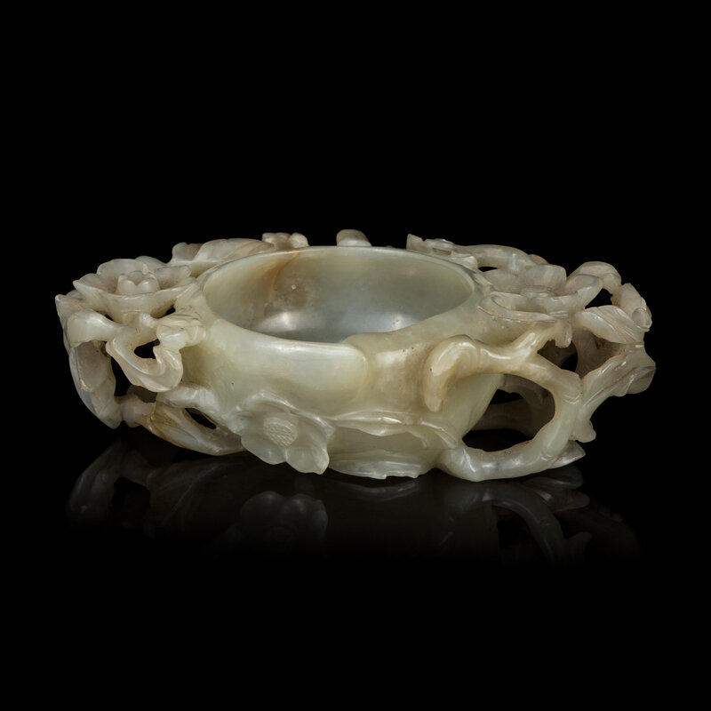 Carved to the exterior of the cup with entwined flowering prunus branches.