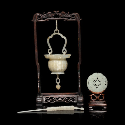Three Chinese Pale Celadon Jade Articles, 19th-20th Century