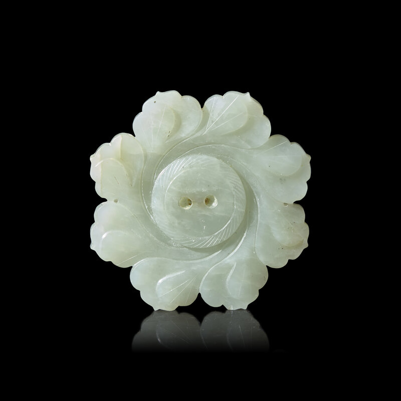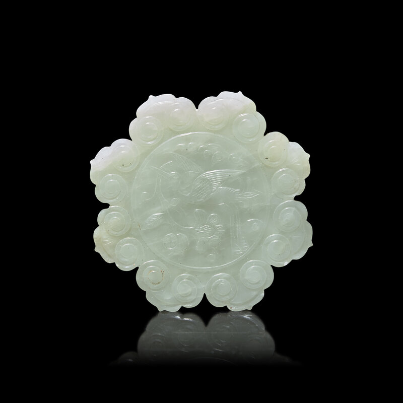 A Large Chinese Pale Celadon Jade Floriform Pendant, 19th Century