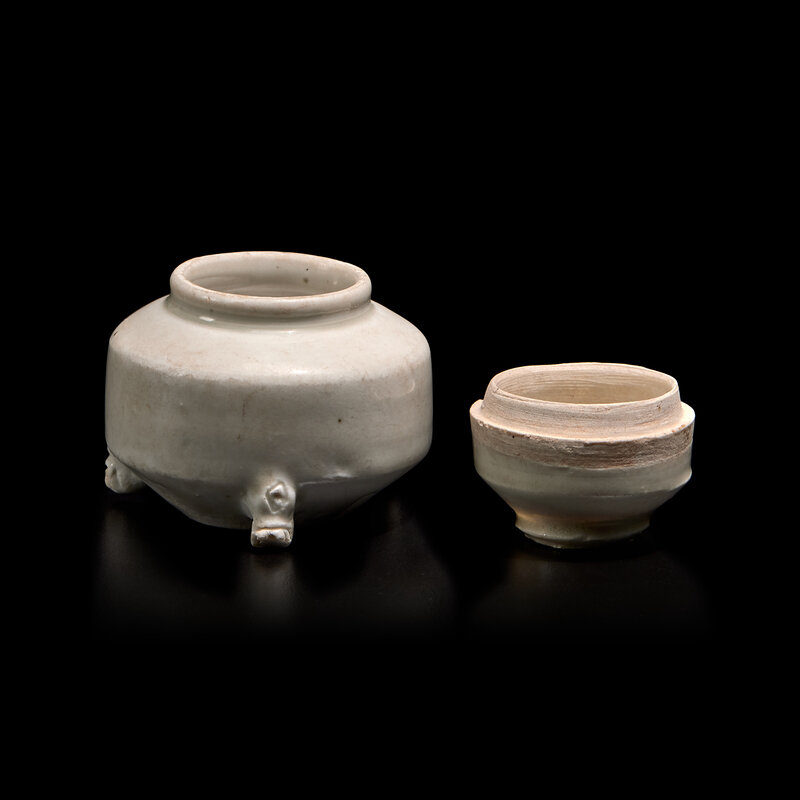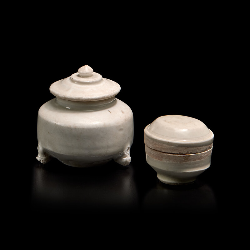 Two Miniature Chinese White Glazed Porcelain Covered Boxes, Song Dynasty