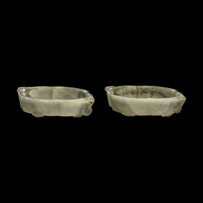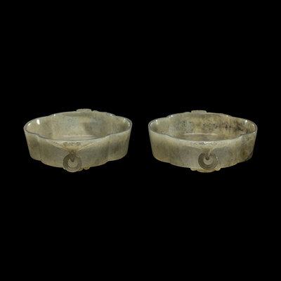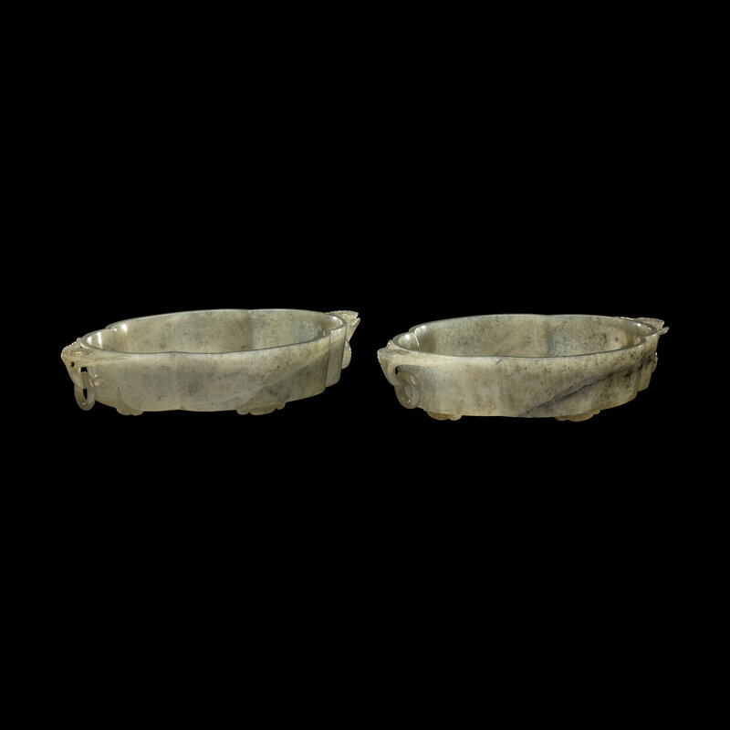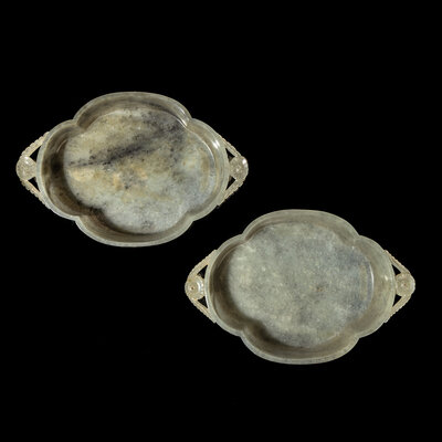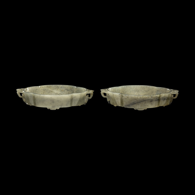 A Pair of Greyish Celadon Jade Quatrefoil-Form Washers, Xi, 19th Century