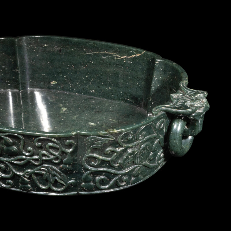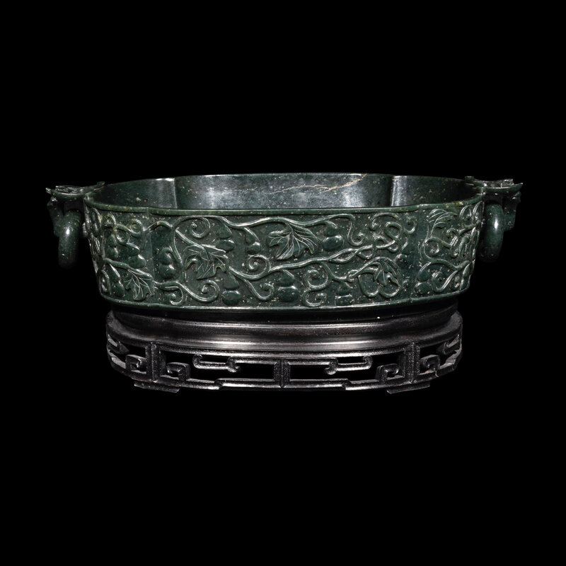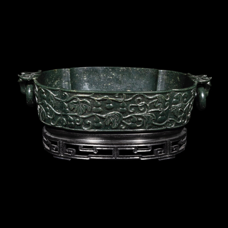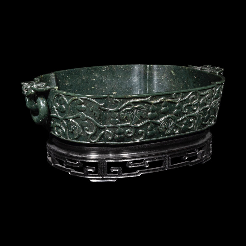 A Chinese Spinach Jade Marriage Bowl, Late Qing/Republic Period