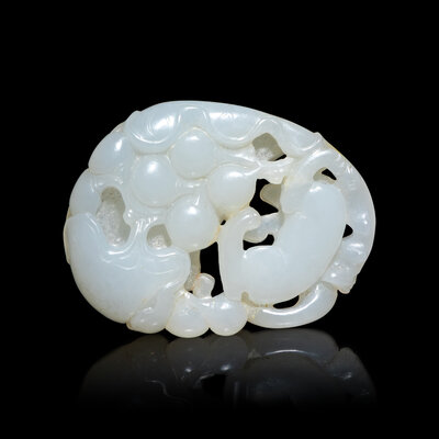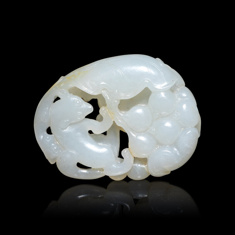 A Chinese White Jade 'Squirrel and Grape' Pendant, 20th Century