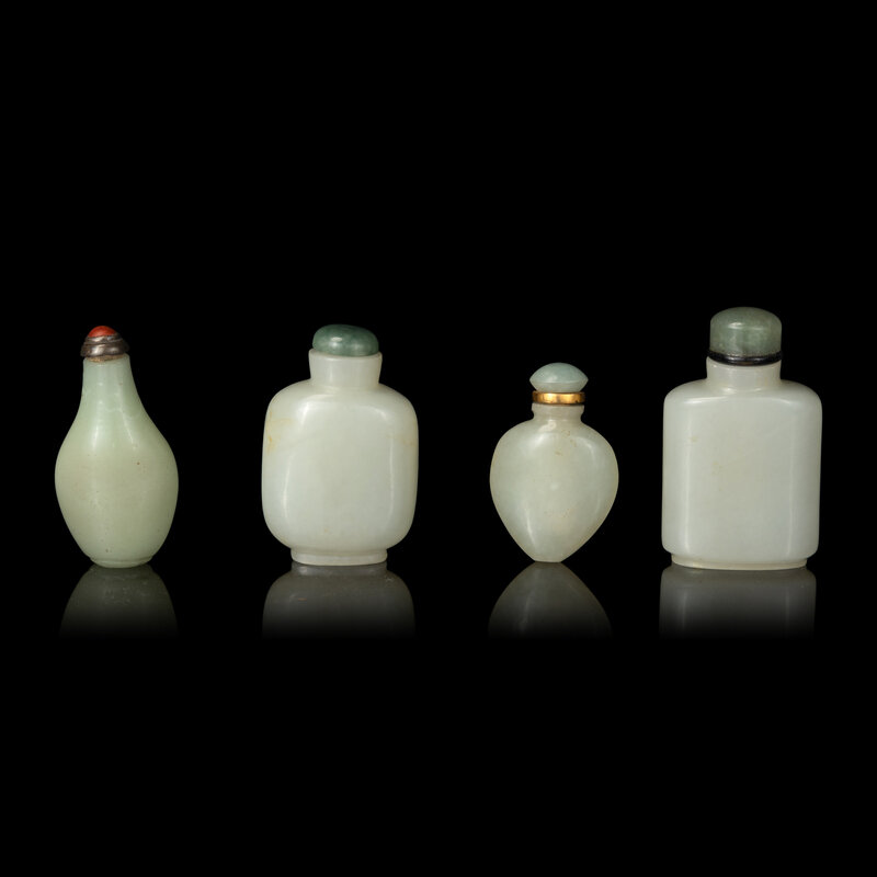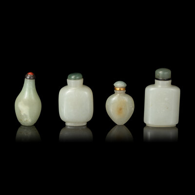 Four Chinese White and Celadon Jade Snuff Bottles, 19th-Early 20th Century