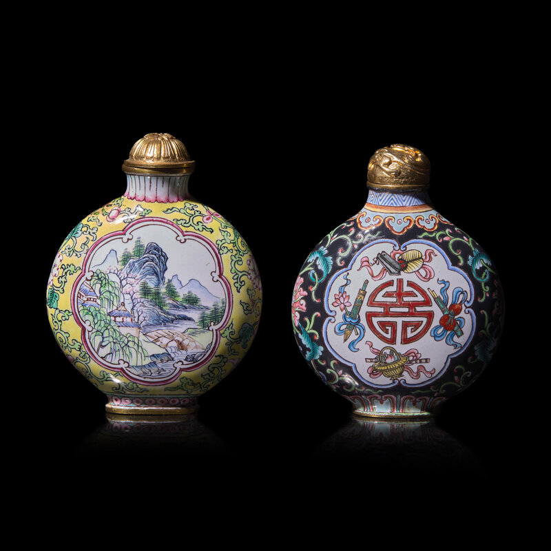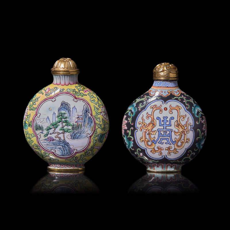 Two Chinese Enamel on Copper Snuff Bottles, 20th Century