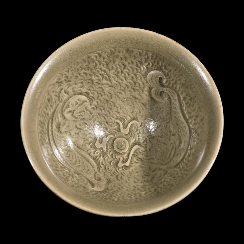 A Small Chinese Yaozhou-Style Celadon Glazed 'Dragon Fish' Bowl, Possibly Northern Song Dynasty