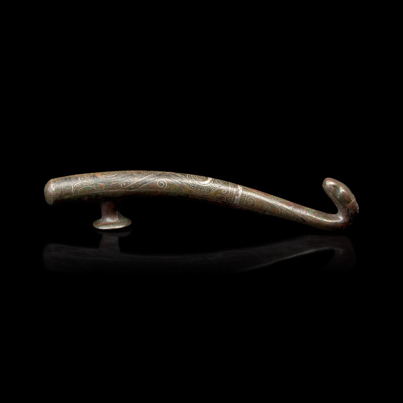 A Chinese Silver Inlaid Bronze Belt Hook, Warring States-Han Dynasty(476.BC-220.AD)