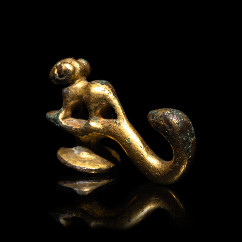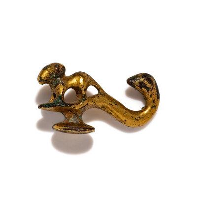 漢 銅鎏金羊首帶鈎