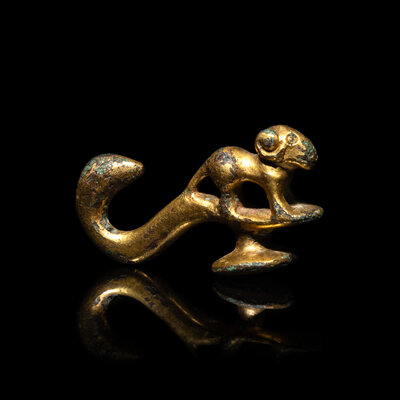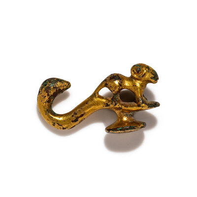 A Chinese Gilt-Bronze 'Ram' Belt Hook, Han Dynasty