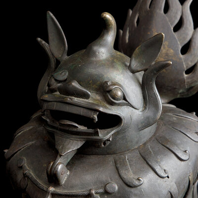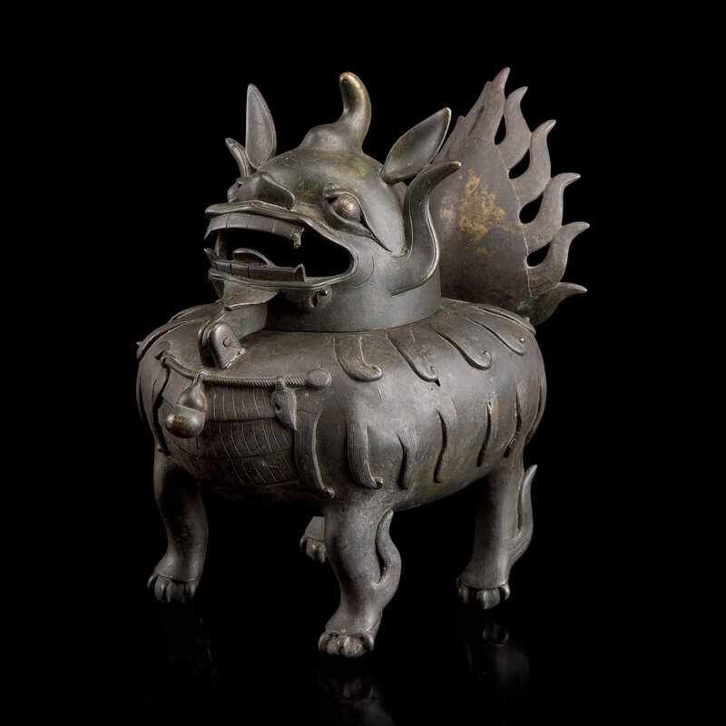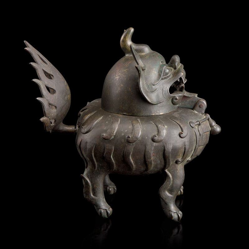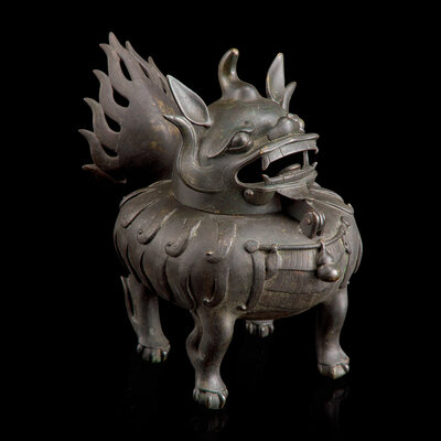 A Chinese Patinated Bronze Luduan Censer, Late Ming to Qing Dynasty