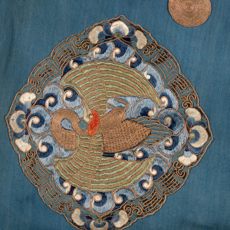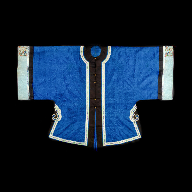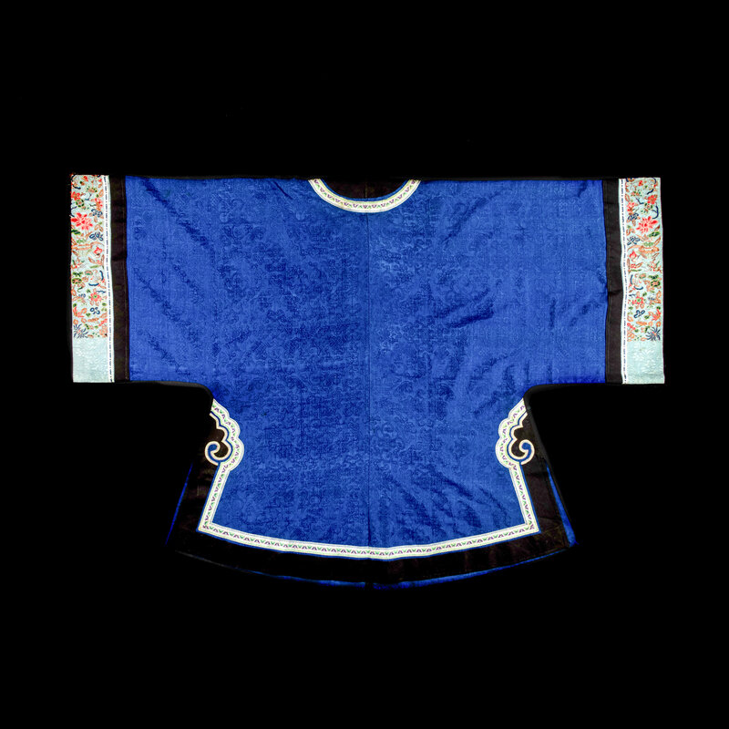 Two Chinese Blue Ground Silk Robes, Late Qing Dynasty