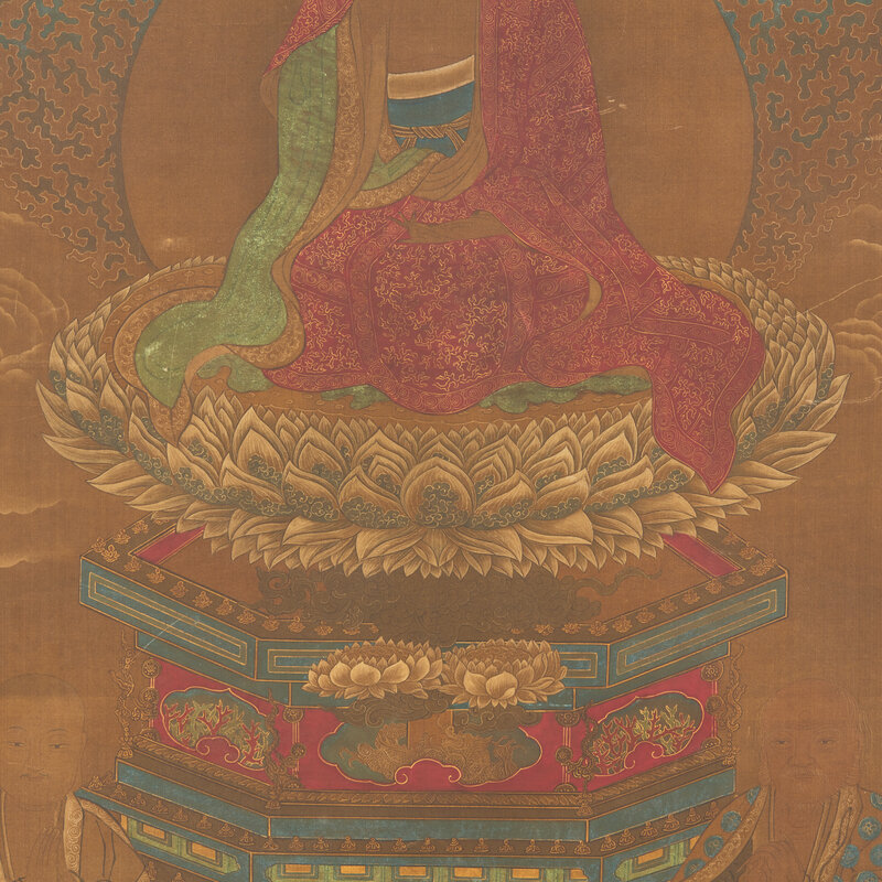 Chinese School, Seated Buddha with Two Attendants, Late Ming-Early Qing Dynasty,
