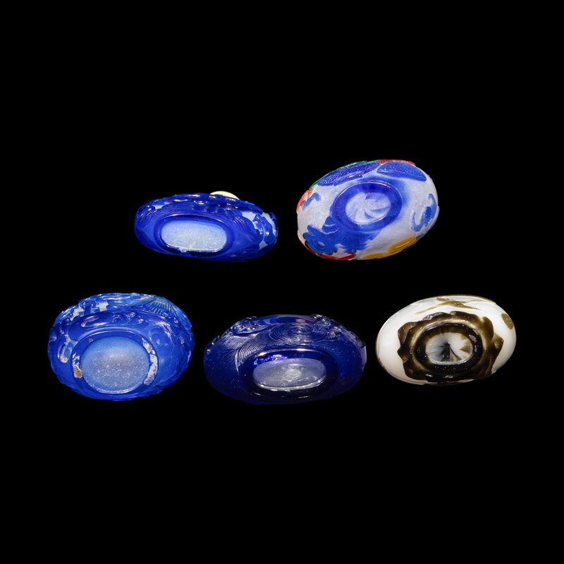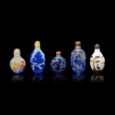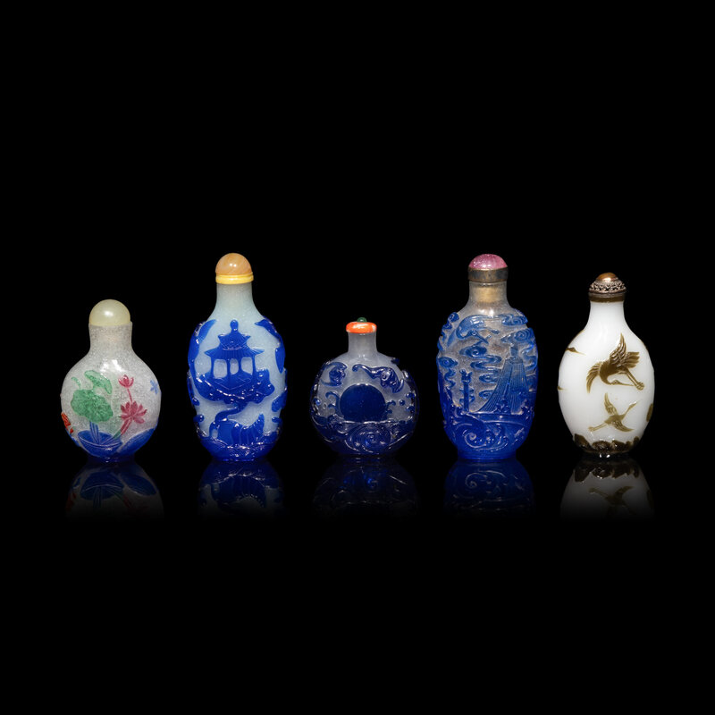 Five Chinese Glass Overlay Snuff Bottles, 19th-20th Century