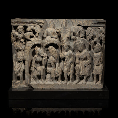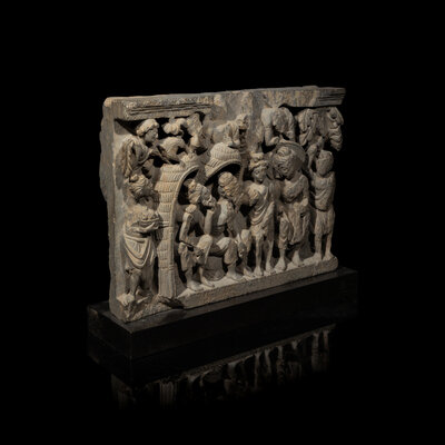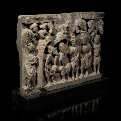 A Gandharan Grey Schist Relief Depicting Buddha Visiting Kashyapa, 2nd/3rd Century