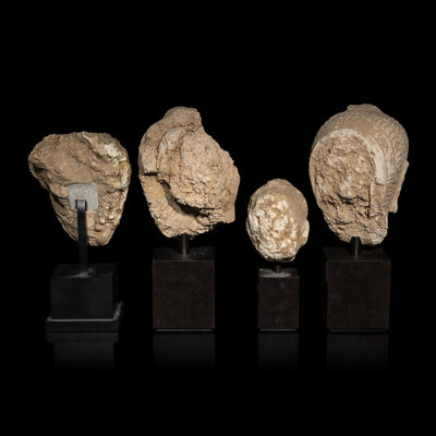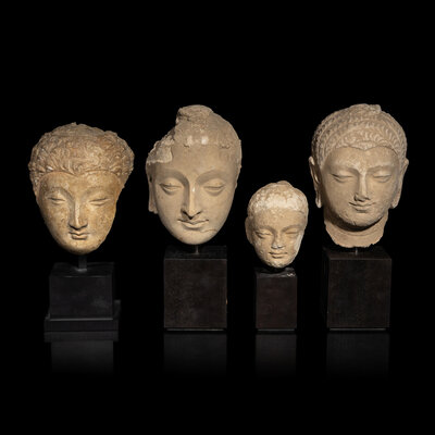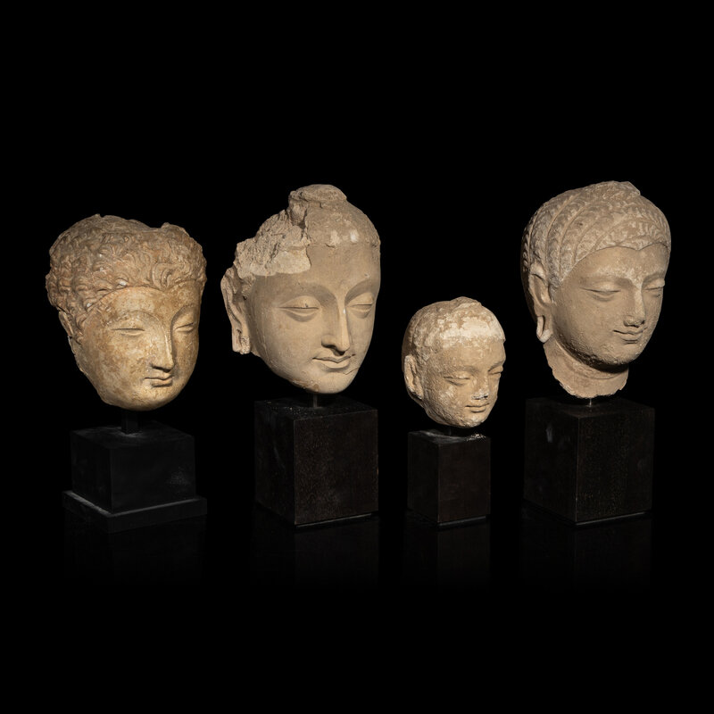 Four Gandharan Terracotta Heads of Buddha, 3rd-5th Century