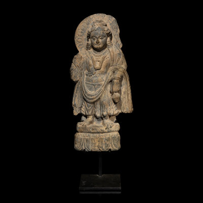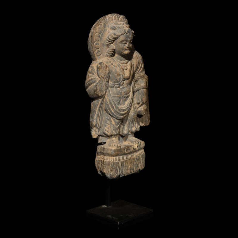 A Gandharan Grey Schist Standing Figure of Bodhisattva Maitraya, 3rd-5th Century