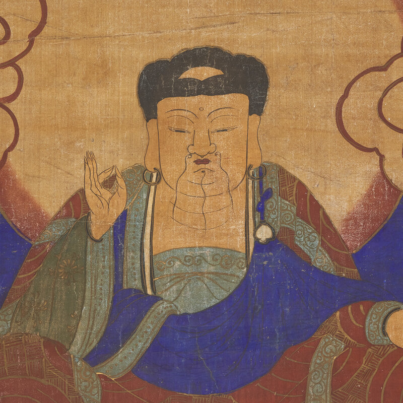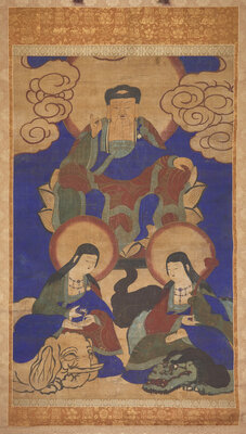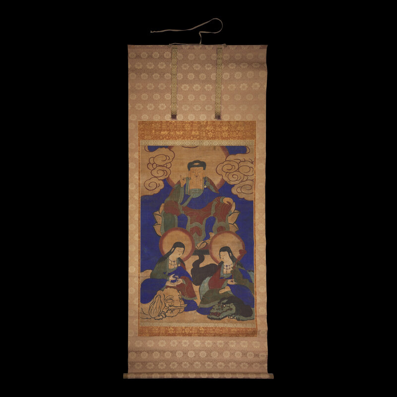 A Korean Buddhist Triad Scroll Painting, Joseon Dynasty