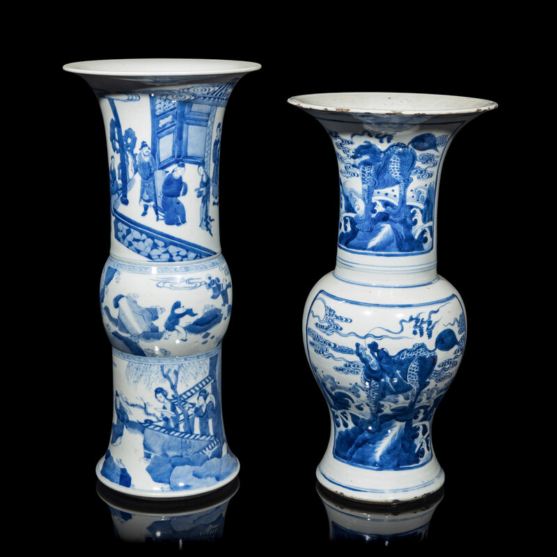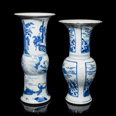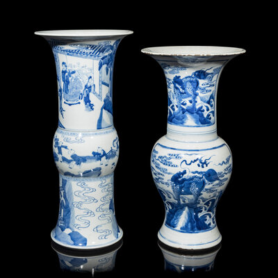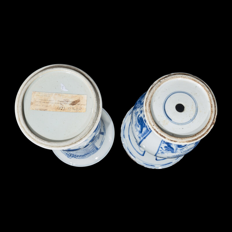 Two Chinese Blue and White Porcelain Yen-Yen Vases, Kangxi Period