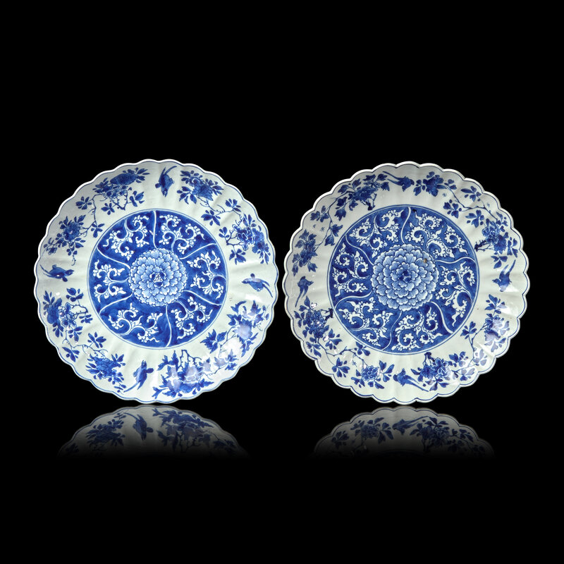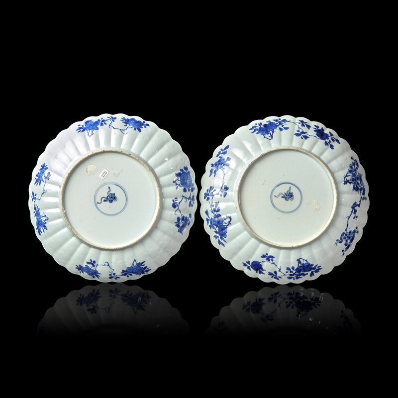 A Pair of Chinese Blue and White Fluted Dishes, Kangxi Period