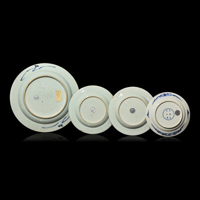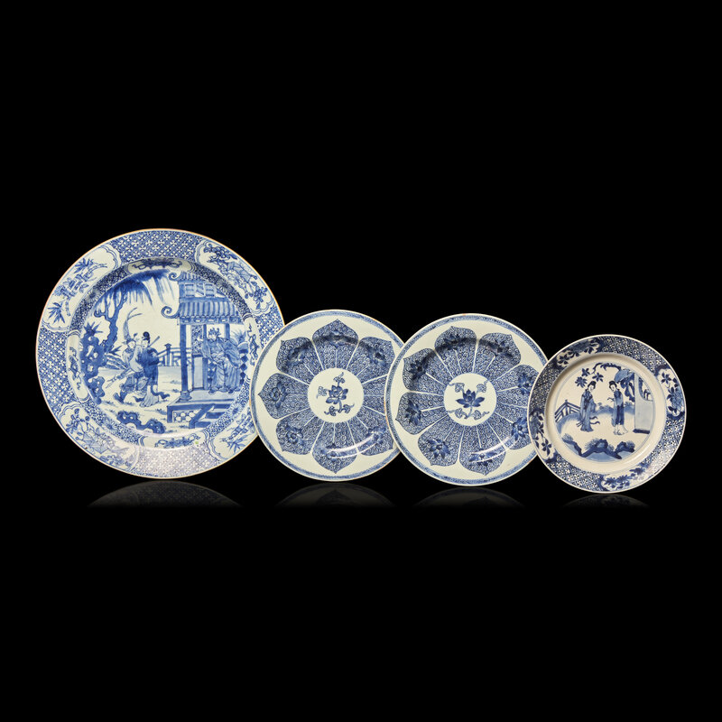 Four Assorted Chinese Blue and White Dishes, Kangxi to Mid-18th Century
