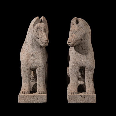A Pair of Japanese Stone Foxes, Kitsuné, 19th Century