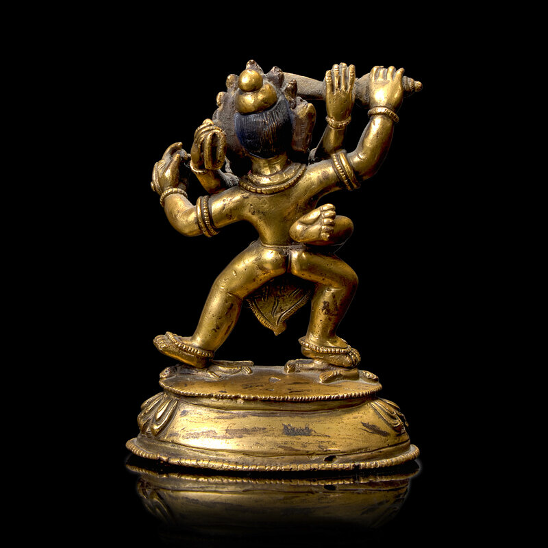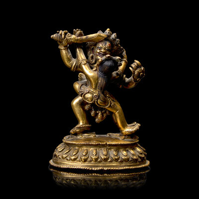 A Small Sino-Tibetan Gilt Bronze Figure of a Mahakala and Shakti