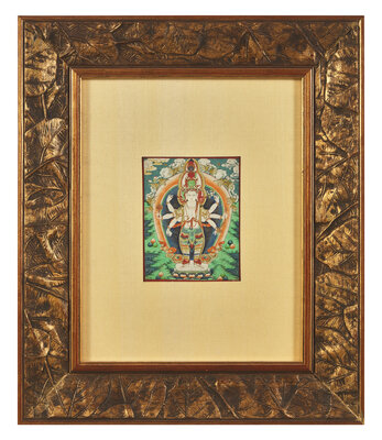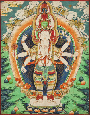A Small Mongolian Thangka, Burhany Zurag, depicting Ekadasamuka Avalokitesvara