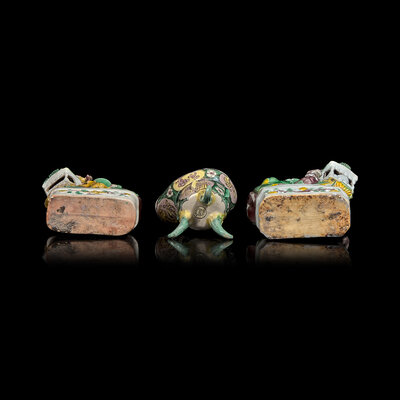 清康熙 五彩來通杯及獅子一對