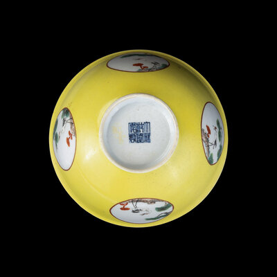 A Chinese Yellow Ground 'Medallion' Porcelain Bowl, Qing Dynasty, 18th Century or Later