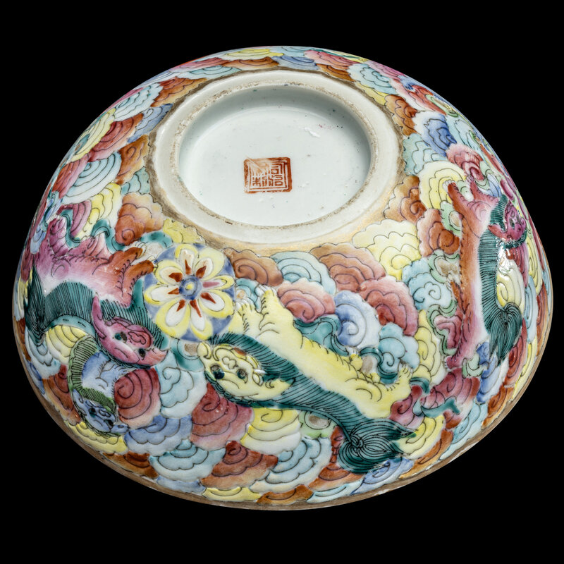 A Chinese Famille Rose Porcelain 'Fu Lion' Bowl, Tongzhi Period