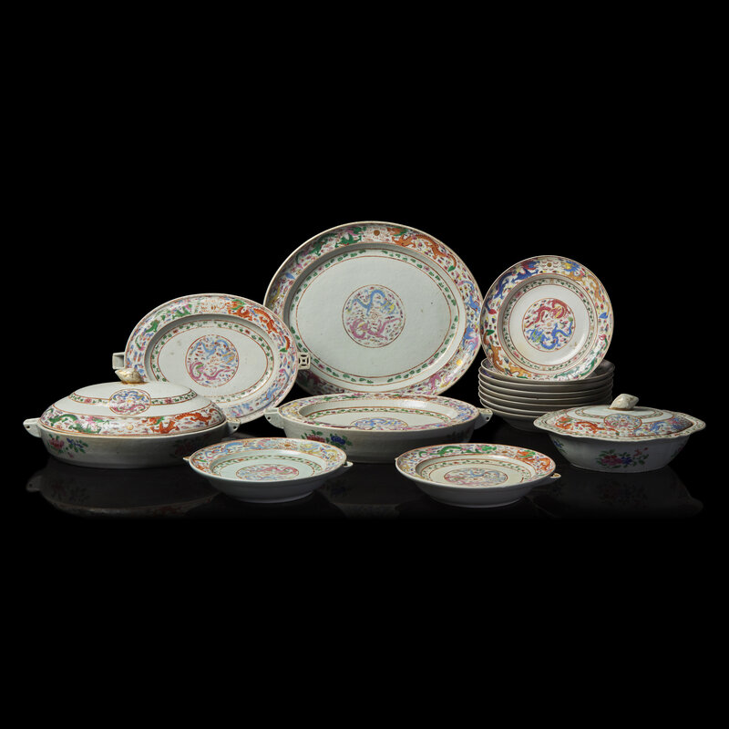 A Chinese Export "Dragons" Part Table Service, 19th Century