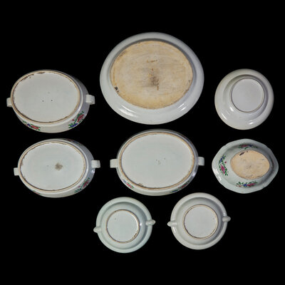 Comprising a group of eight soup plates, an oval platter, three assorted oval warming dishes and one cover; a covered vegetable dish, two circular warming dishes.