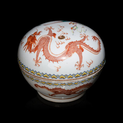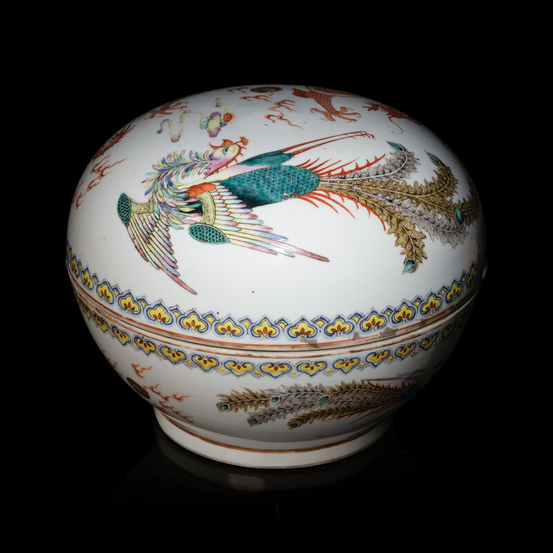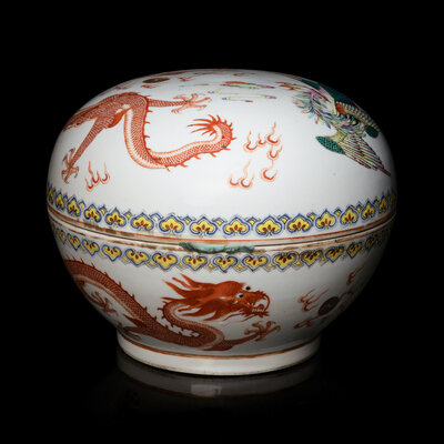 A Chinese Famille Rose Porcelain 'Dragon and Phoenix' Box and Cover, Late 19th/Early 20th Century