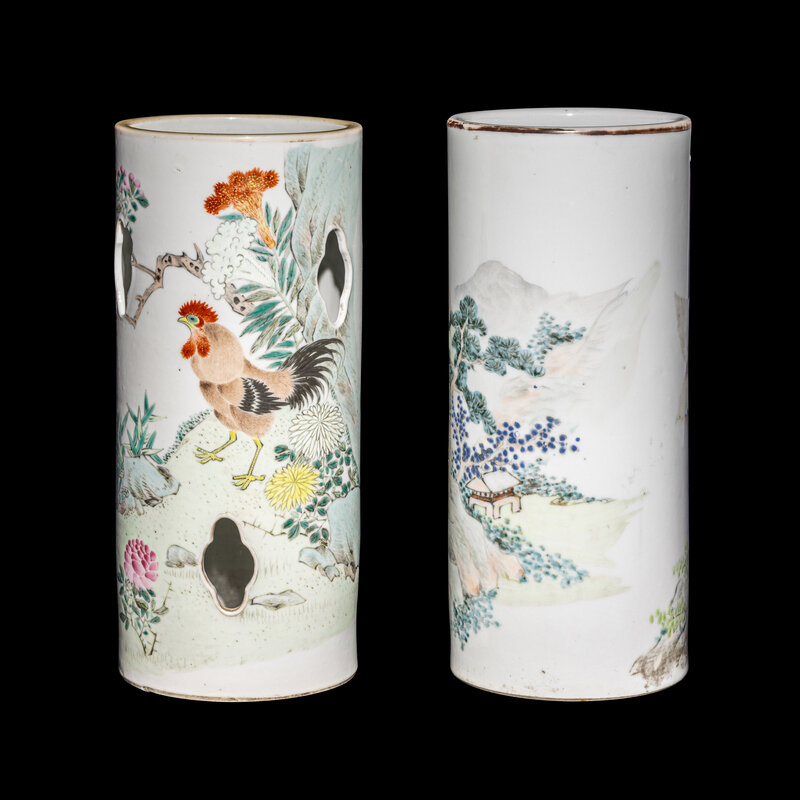 Two Chinese Qianjiang Enameled Porcelain Hat Stands, Late Qing Dynasty