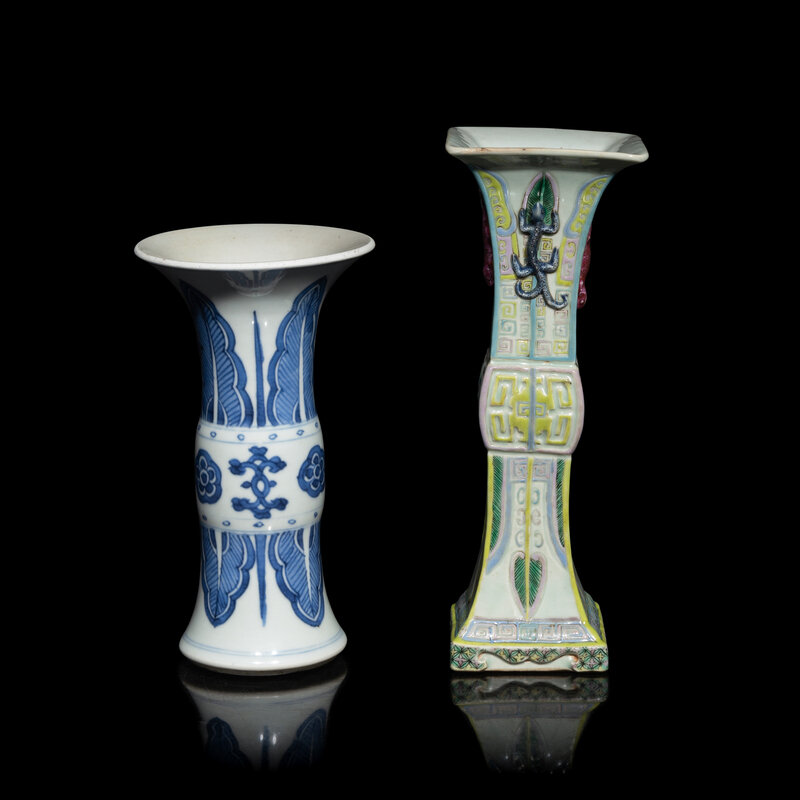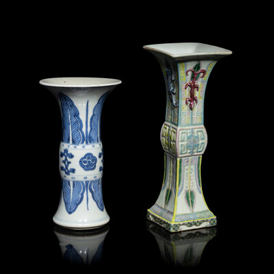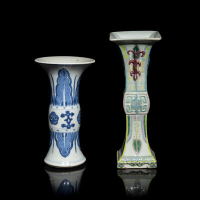 Two Chinese Porcelain Gu Vases, 18th-19th Century