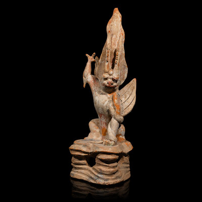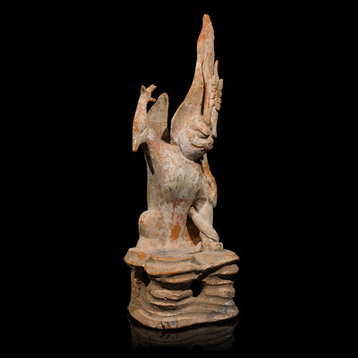 A Chinese Painted Pottery Figure of an Earth Spirit, Tang Dynasty