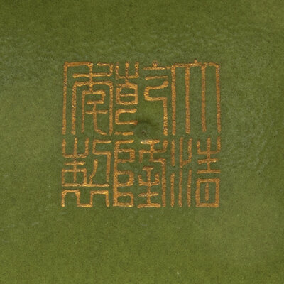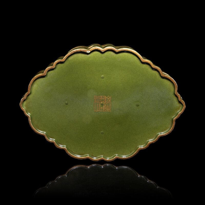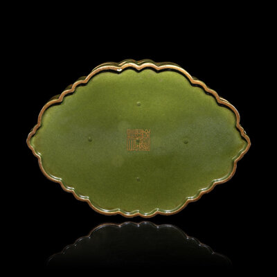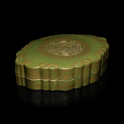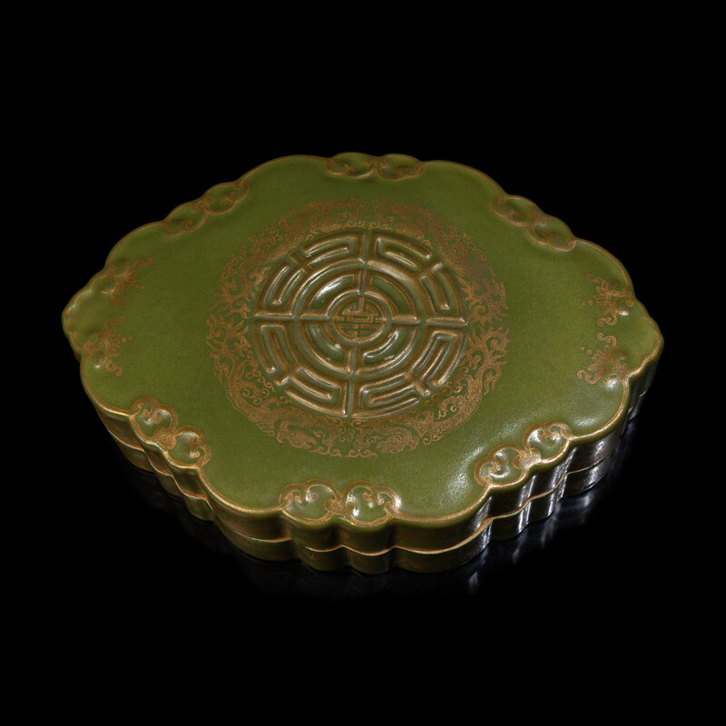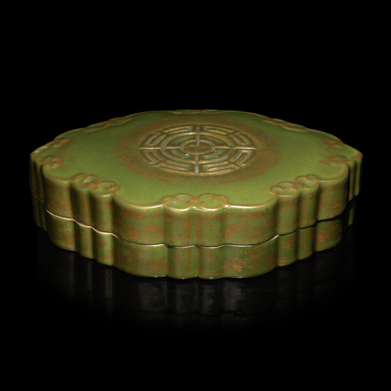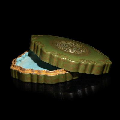 乾隆款 茶葉末地描金團壽紋海棠式蓋盒
